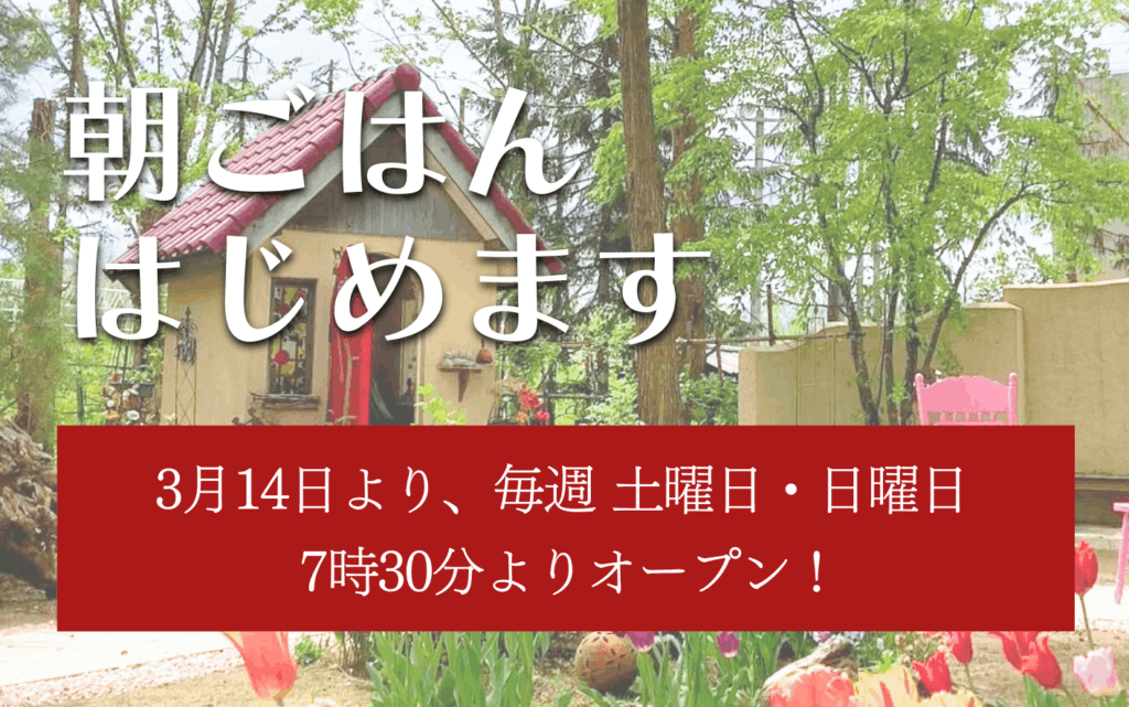 3月14日より、朝食営業を開始します。営業日は、毎週 土曜日・日曜日で、7時30分からのオープンです洋食だけでなく、和食も選べます。ぜひお気軽にお越し下さい! morningダウンロード
